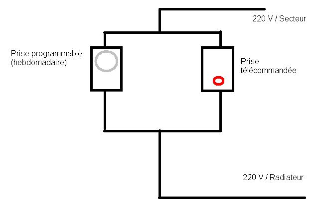 De ce fait soit le programmateur, soit la prise télécommandable alimenteront le radiateur.